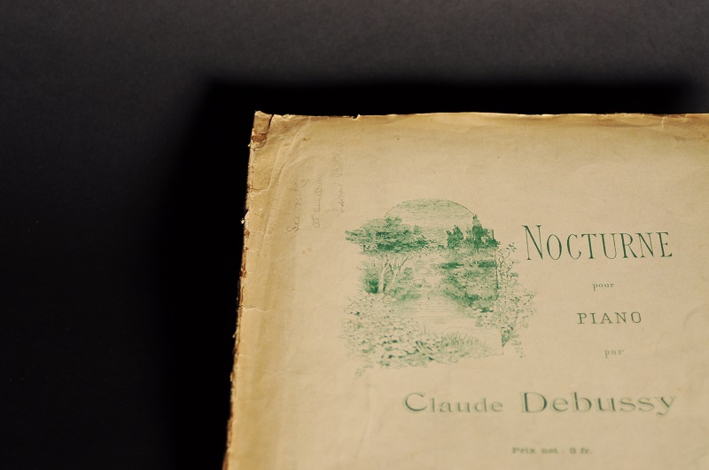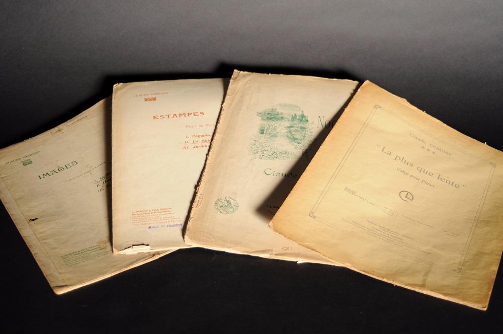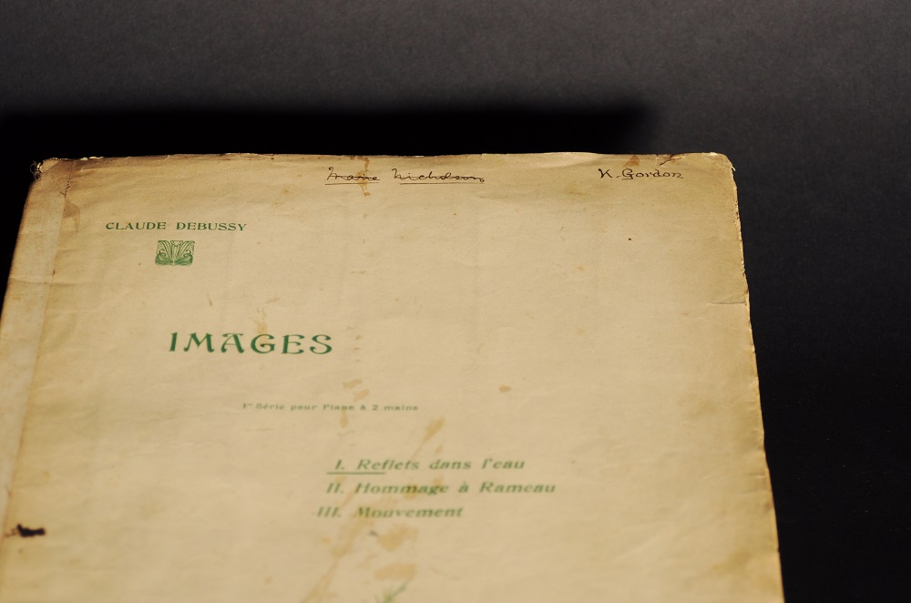 孝四郎がドビュッシーに心惹かれていたことはよく知られている。好んで弾いていたのは「ゴリウォーグのケークウォーク」、自己流ゆえに、もともと面白いリズムがさらにゆがんだ感じになり、家族には不評であった。ドビュッシーと言えば、日本では「ベルガマスク組曲」のなかの「月の光」が特に有名だが、この楽譜は所蔵されていない。