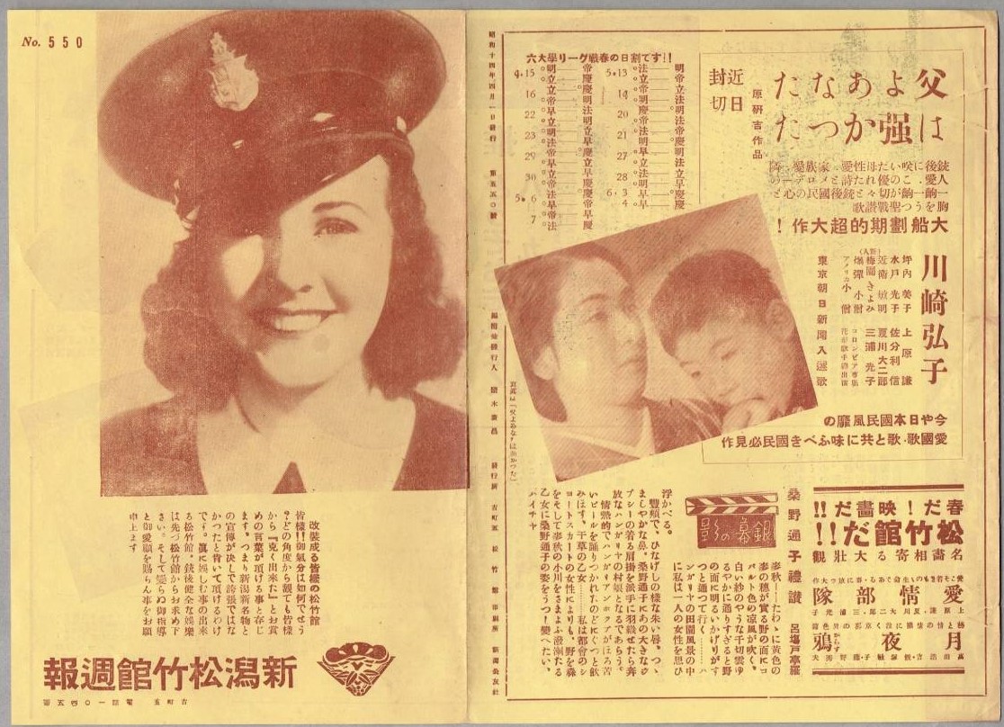 映画は、映画検索サイト「KINENOTE」に項目はないものの、同年公開の「年ごろ」の紹介に「アヴェ・マリア」として言及があり、ネット・オークション情報に挙がっている『新潟松竹館週報』に同じ写真が掲載されている。新潟県在住と思しき人物のブログにも「アヴェ・マリア」と記載されていることから、1939年に上映されたのではないかと推察する。