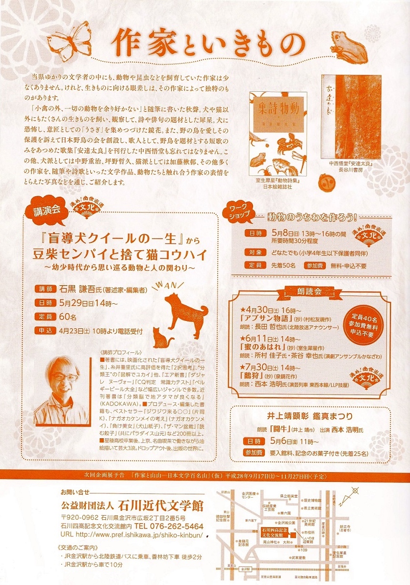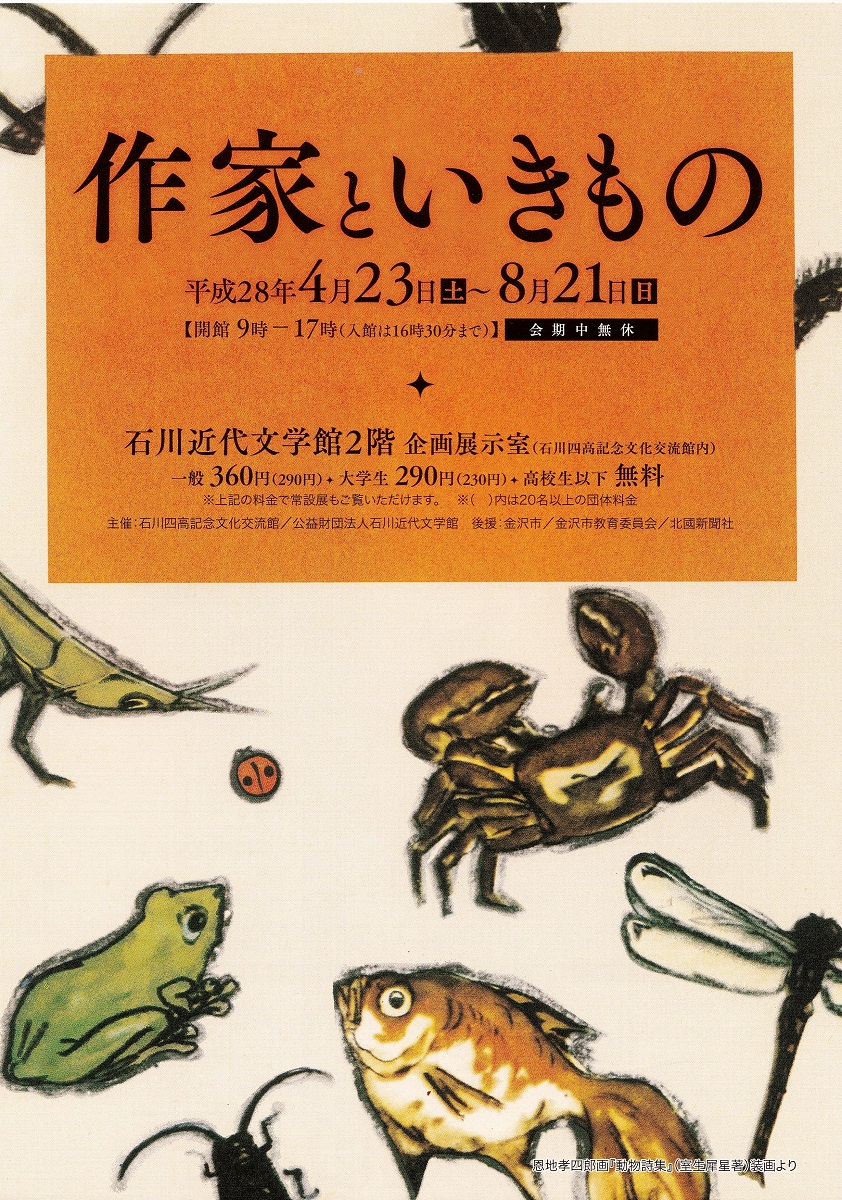 石川近代文学館2階 企画展示室「作家といきもの」展