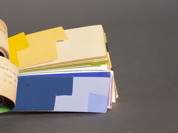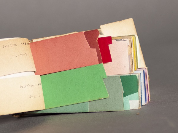 この色名帖から、邦郎が小さな四角を切り抜き、何か描かれた紙の脇に並べて貼りつける作業を見るのは楽しく、しかるのちに訪れる客人(編集者)にその紙が渡されると、時をおいて書籍が帰ってくる。これには驚かされた。