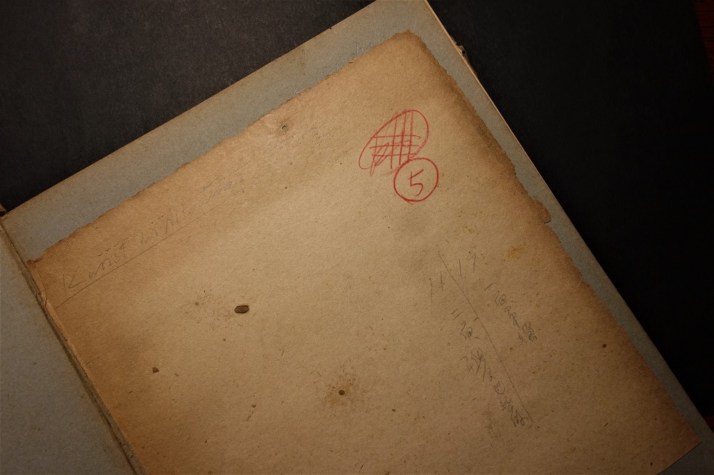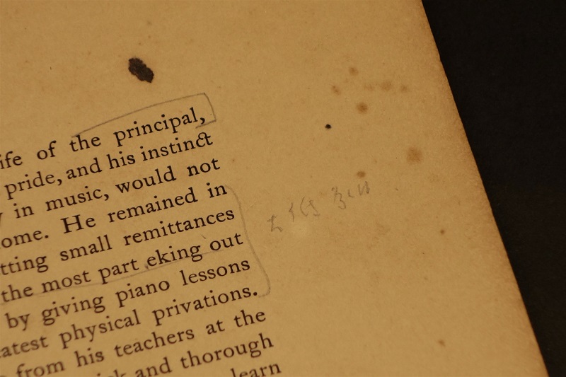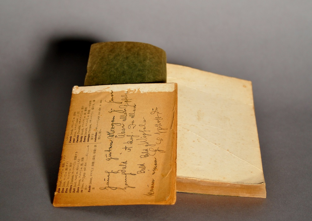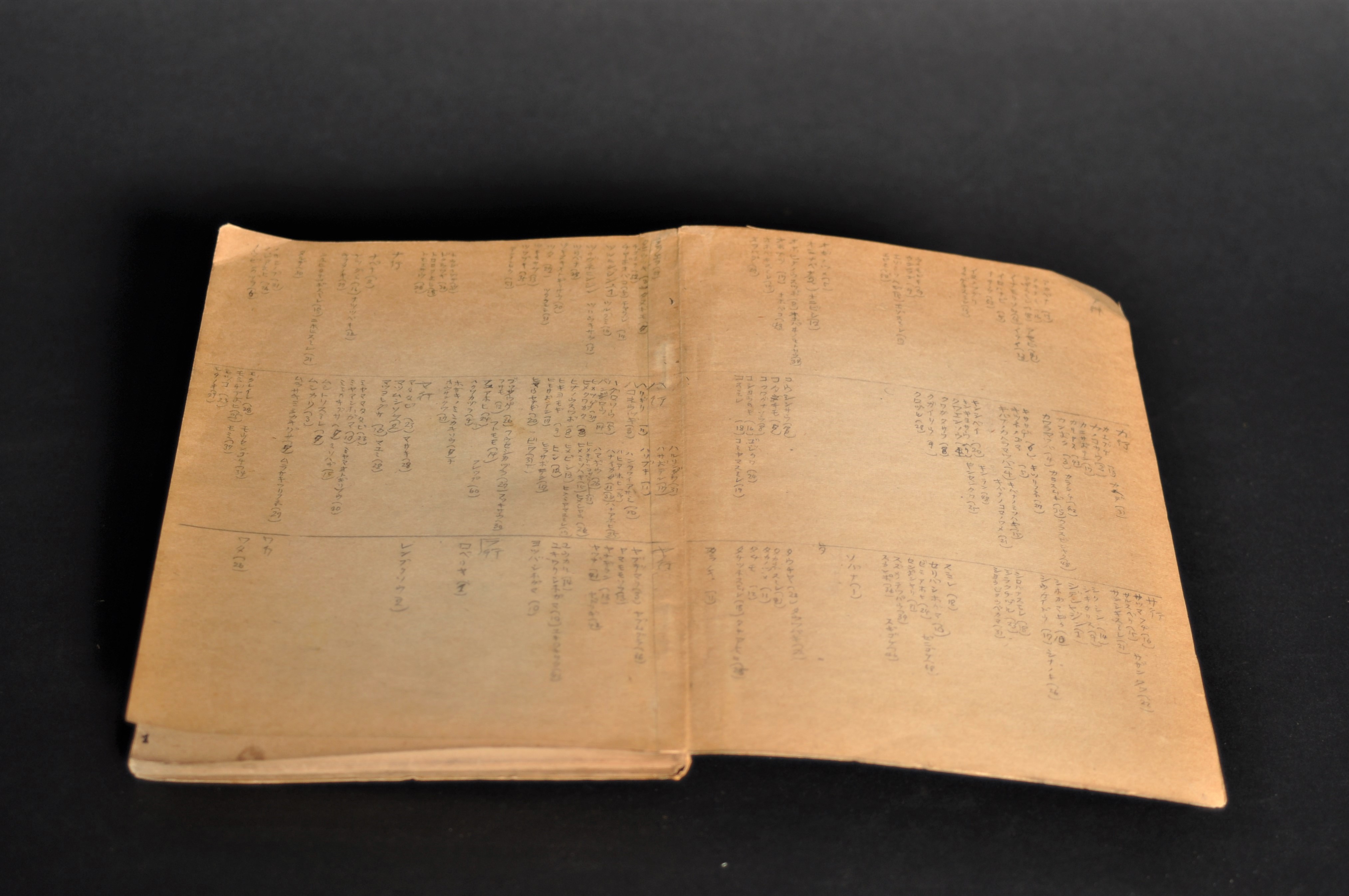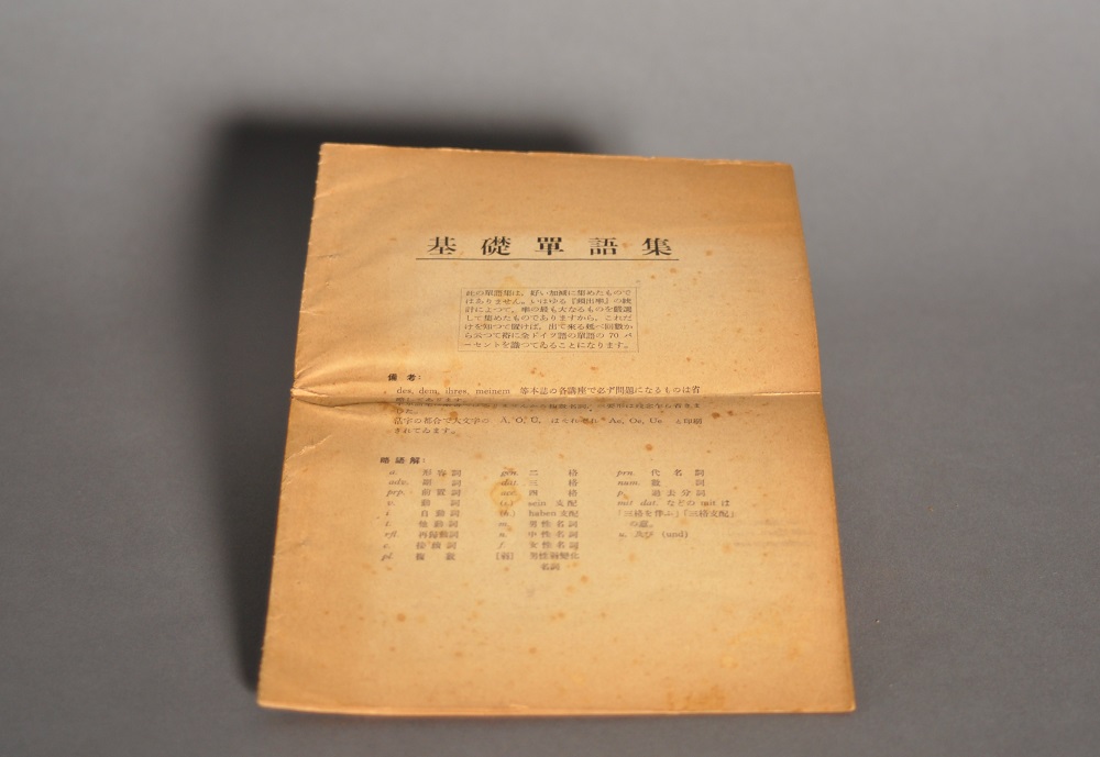 挟み込まれたドイツ語の「基礎單語集」は別の本の一部、孝四郎によるメモあり。