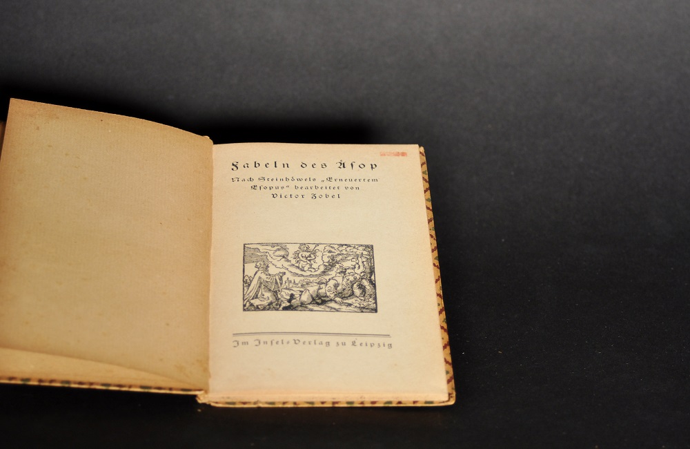 Fabeln der Äsop Mit 49 Holzschnitten : nach Steinhöwels “Erneuertem Esopus” .Bearbeitet von Victor Zobel , Insel Bücherei Nr.272, Insel der Verlag Leipzig, 19-