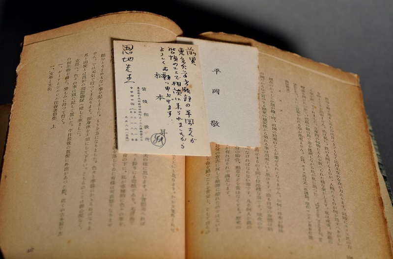 博報堂装幀相談所の松本昇氏の名刺と東京大學出版部の平岡敬氏の名刺が挟み込まれていた。