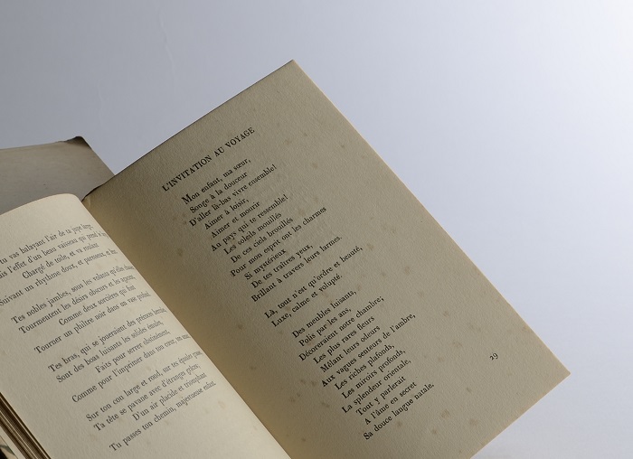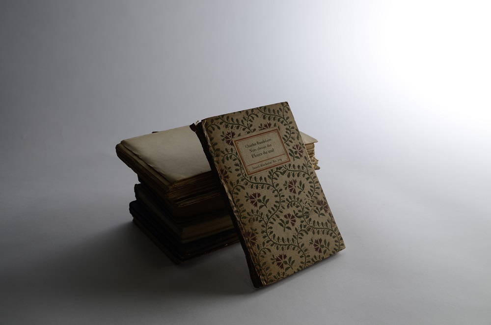 ご紹介, 蔵書(孝四郎) シャルル・ボードレール 『悪の華』 2015/11/06 萩原朔太郎が影響を受けた詩人のひとり、シャルル・ボードレール(1821-1867)の代表作『悪の華』、 孝四郎も装幀を手がけている作品、 この本は、戦前、ライプツィッヒの出版社から原語(フランス語)で出版されたものです。
